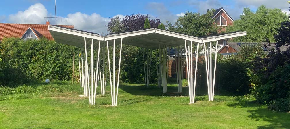 Die fertigen Solarpavillons können dann auf dem Grundstück in optimaler Sonnenlage installiert werden und Verschattungsprobleme auf Dächern umgangen werden.